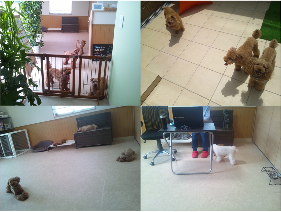 giustoでは、問題の予防、改善アプローチの一環として、日中お預かりする保育トレーニングを行っておりますが、日や頭数を調整し、ケージフリーにて過ごす時間を長く設けております。